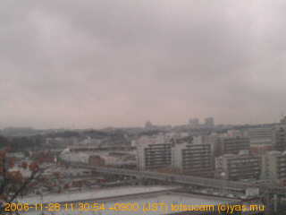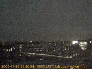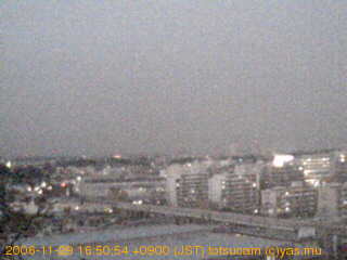 適度に曇った日の雲の動き (例: 2005-10-24) がとても楽しめます。 正面を横切っている高架は横須賀線下りです。 その下に横須賀線上り、東海道線、同貨物線が走っていますが、 高架に隠れていてよく見えません。 夜間は特に中央左寄りの車の動きがよく見えます。