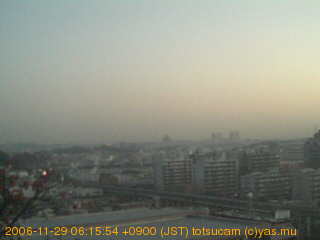 横浜市戸塚駅周辺から 東戸塚方面(北北東)を望む展望カメラの映像です。 左は現在の映像です。 下に並んでいるのは、 7日間に亘る日の出どき、昼間、夕暮れどきの写真(サムネイル)です。 それぞれ、日の出15分前、南中時、日没20分後の写真となっています。 各写真の下にはmpeg形式の動画へのリンクがあります。 それぞれ、日の出、南中、日没の前後1時間の画像です。 右欄にはその日24時間の動画へのリンクがあります。 この7日間以外は日付が一覧表示されています。 日付部分をクリックすると、 その日付から7日分が展開されて表示されます。