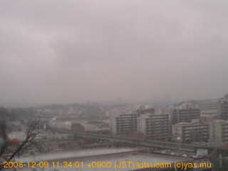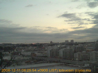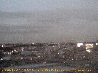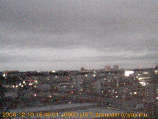 横浜市戸塚駅周辺から 東戸塚方面(北北東)を望む展望カメラの映像です。 左は現在の映像です。 下に並んでいるのは、 7日間に亘る日の出どき、昼間、夕暮れどきの写真(サムネイル)です。 それぞれ、日の出15分前、南中時、日没20分後の写真となっています。 各写真の下にはmpeg形式の動画へのリンクがあります。 それぞれ、日の出、南中、日没の前後1時間の画像です。 右欄にはその日24時間の動画へのリンクがあります。 この7日間以外は日付が一覧表示されています。 日付部分をクリックすると、 その日付から7日分が展開されて表示されます。
