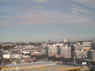 適度に曇った日の雲の動き (例: 2005-10-24) がとても楽しめます。 正面を横切っている高架は横須賀線下りです。 その下に横須賀線上り、東海道線、同貨物線が走っていますが、 高架に隠れていてよく見えません。 夜間は特に中央左寄りの車の動きがよく見えます。