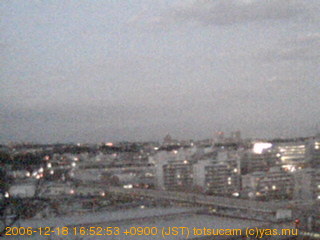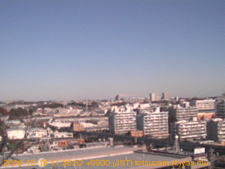 適度に曇った日の雲の動き (例: 2005-10-24) がとても楽しめます。 正面を横切っている高架は横須賀線下りです。 その下に横須賀線上り、東海道線、同貨物線が走っていますが、 高架に隠れていてよく見えません。 夜間は特に中央左寄りの車の動きがよく見えます。