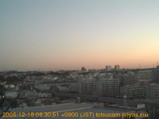 横浜市戸塚駅周辺から 東戸塚方面(北北東)を望む展望カメラの映像です。 左は現在の映像です。 下に並んでいるのは、 7日間に亘る日の出どき、昼間、夕暮れどきの写真(サムネイル)です。 それぞれ、日の出15分前、南中時、日没20分後の写真となっています。 各写真の下にはmpeg形式の動画へのリンクがあります。 それぞれ、日の出、南中、日没の前後1時間の画像です。 右欄にはその日24時間の動画へのリンクがあります。 この7日間以外は日付が一覧表示されています。 日付部分をクリックすると、 その日付から7日分が展開されて表示されます。