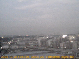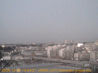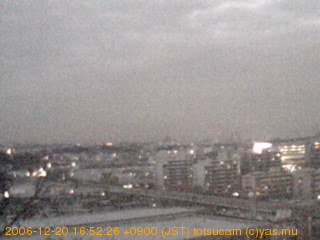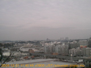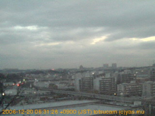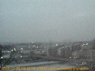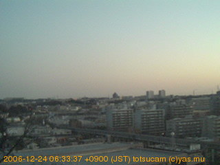 横浜市戸塚駅周辺から 東戸塚方面(北北東)を望む展望カメラの映像です。 左は現在の映像です。 下に並んでいるのは、 7日間に亘る日の出どき、昼間、夕暮れどきの写真(サムネイル)です。 それぞれ、日の出15分前、南中時、日没20分後の写真となっています。 各写真の下にはmpeg形式の動画へのリンクがあります。 それぞれ、日の出、南中、日没の前後1時間の画像です。 右欄にはその日24時間の動画へのリンクがあります。 この7日間以外は日付が一覧表示されています。 日付部分をクリックすると、 その日付から7日分が展開されて表示されます。