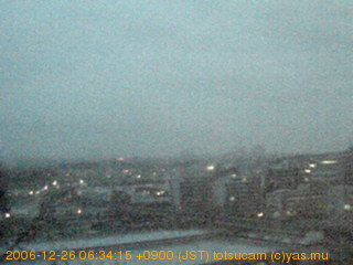 横浜市戸塚駅周辺から 東戸塚方面(北北東)を望む展望カメラの映像です。 左は現在の映像です。 下に並んでいるのは、 7日間に亘る日の出どき、昼間、夕暮れどきの写真(サムネイル)です。 それぞれ、日の出15分前、南中時、日没20分後の写真となっています。 各写真の下にはmpeg形式の動画へのリンクがあります。 それぞれ、日の出、南中、日没の前後1時間の画像です。 右欄にはその日24時間の動画へのリンクがあります。 この7日間以外は日付が一覧表示されています。 日付部分をクリックすると、 その日付から7日分が展開されて表示されます。