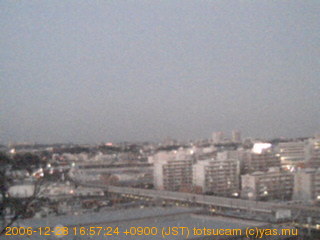 横浜市戸塚駅周辺から 東戸塚方面(北北東)を望む展望カメラの映像です。 左は現在の映像です。 下に並んでいるのは、 7日間に亘る日の出どき、昼間、夕暮れどきの写真(サムネイル)です。 それぞれ、日の出15分前、南中時、日没20分後の写真となっています。 各写真の下にはmpeg形式の動画へのリンクがあります。 それぞれ、日の出、南中、日没の前後1時間の画像です。 右欄にはその日24時間の動画へのリンクがあります。 この7日間以外は日付が一覧表示されています。 日付部分をクリックすると、 その日付から7日分が展開されて表示されます。