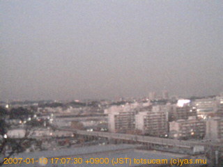 横浜市戸塚駅周辺から 東戸塚方面(北北東)を望む展望カメラの映像です。 左は現在の映像です。 下に並んでいるのは、 7日間に亘る日の出どき、昼間、夕暮れどきの写真(サムネイル)です。 それぞれ、日の出15分前、南中時、日没20分後の写真となっています。 各写真の下にはmpeg形式の動画へのリンクがあります。 それぞれ、日の出、南中、日没の前後1時間の画像です。 右欄にはその日24時間の動画へのリンクがあります。 この7日間以外は日付が一覧表示されています。 日付部分をクリックすると、 その日付から7日分が展開されて表示されます。