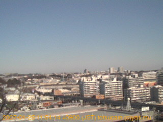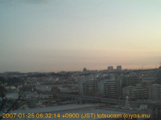 横浜市戸塚駅周辺から 東戸塚方面(北北東)を望む展望カメラの映像です。 左は現在の映像です。 下に並んでいるのは、 7日間に亘る日の出どき、昼間、夕暮れどきの写真(サムネイル)です。 それぞれ、日の出15分前、南中時、日没20分後の写真となっています。 各写真の下にはmpeg形式の動画へのリンクがあります。 それぞれ、日の出、南中、日没の前後1時間の画像です。 右欄にはその日24時間の動画へのリンクがあります。 この7日間以外は日付が一覧表示されています。 日付部分をクリックすると、 その日付から7日分が展開されて表示されます。