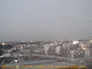横浜市戸塚駅周辺から 東戸塚方面(北北東)を望む展望カメラの映像です。 左は現在の映像です。 下に並んでいるのは、 7日間に亘る日の出どき、昼間、夕暮れどきの写真(サムネイル)です。 それぞれ、日の出15分前、南中時、日没20分後の写真となっています。 各写真の下にはmpeg形式の動画へのリンクがあります。 それぞれ、日の出、南中、日没の前後1時間の画像です。 右欄にはその日24時間の動画へのリンクがあります。 この7日間以外は日付が一覧表示されています。 日付部分をクリックすると、 その日付から7日分が展開されて表示されます。