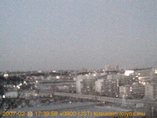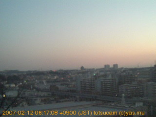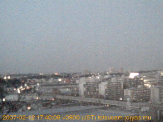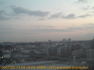 横浜市戸塚駅周辺から 東戸塚方面(北北東)を望む展望カメラの映像です。 左は現在の映像です。 下に並んでいるのは、 7日間に亘る日の出どき、昼間、夕暮れどきの写真(サムネイル)です。 それぞれ、日の出15分前、南中時、日没20分後の写真となっています。 各写真の下にはmpeg形式の動画へのリンクがあります。 それぞれ、日の出、南中、日没の前後1時間の画像です。 右欄にはその日24時間の動画へのリンクがあります。 この7日間以外は日付が一覧表示されています。 日付部分をクリックすると、 その日付から7日分が展開されて表示されます。