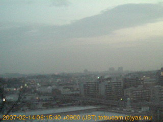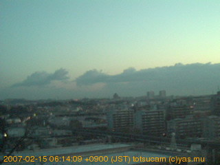 横浜市戸塚駅周辺から 東戸塚方面(北北東)を望む展望カメラの映像です。 左は現在の映像です。 下に並んでいるのは、 7日間に亘る日の出どき、昼間、夕暮れどきの写真(サムネイル)です。 それぞれ、日の出15分前、南中時、日没20分後の写真となっています。 各写真の下にはmpeg形式の動画へのリンクがあります。 それぞれ、日の出、南中、日没の前後1時間の画像です。 右欄にはその日24時間の動画へのリンクがあります。 この7日間以外は日付が一覧表示されています。 日付部分をクリックすると、 その日付から7日分が展開されて表示されます。