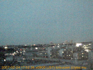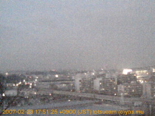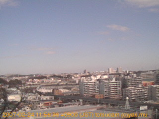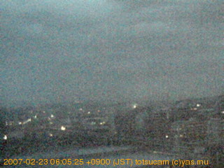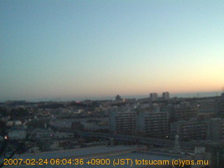 横浜市戸塚駅周辺から 東戸塚方面(北北東)を望む展望カメラの映像です。 左は現在の映像です。 下に並んでいるのは、 7日間に亘る日の出どき、昼間、夕暮れどきの写真(サムネイル)です。 それぞれ、日の出15分前、南中時、日没20分後の写真となっています。 各写真の下にはmpeg形式の動画へのリンクがあります。 それぞれ、日の出、南中、日没の前後1時間の画像です。 右欄にはその日24時間の動画へのリンクがあります。 この7日間以外は日付が一覧表示されています。 日付部分をクリックすると、 その日付から7日分が展開されて表示されます。