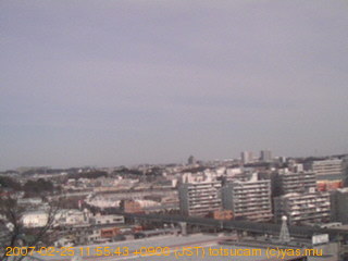 適度に曇った日の雲の動き (例: 2005-10-24) がとても楽しめます。 正面を横切っている高架は横須賀線下りです。 その下に横須賀線上り、東海道線、同貨物線が走っていますが、 高架に隠れていてよく見えません。 夜間は特に中央左寄りの車の動きがよく見えます。