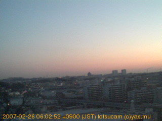 展望カメラtotsucam映像: 戸塚駅周辺から東戸塚方面を望む 2007-02-26(月) dawn展望カメラtotsucam映像: 戸塚駅周辺から東戸塚方面を望む 2007-02-26(月) culm展望カメラtotsucam映像: 戸塚駅周辺から東戸塚方面を望む 2007-02-26(月) duskmpeg動画