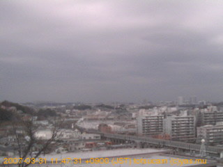 適度に曇った日の雲の動き (例: 2005-10-24) がとても楽しめます。 正面を横切っている高架は横須賀線下りです。 その下に横須賀線上り、東海道線、同貨物線が走っていますが、 高架に隠れていてよく見えません。 夜間は特に中央左寄りの車の動きがよく見えます。