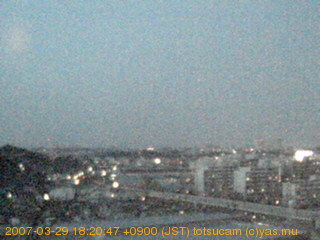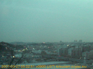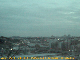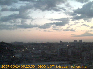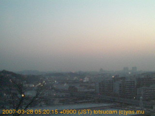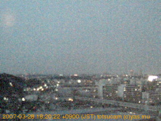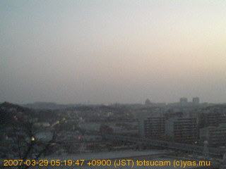 横浜市戸塚駅周辺から 東戸塚方面(北北東)を望む展望カメラの映像です。 左は現在の映像です。 下に並んでいるのは、 7日間に亘る日の出どき、昼間、夕暮れどきの写真(サムネイル)です。 それぞれ、日の出15分前、南中時、日没20分後の写真となっています。 各写真の下にはmpeg形式の動画へのリンクがあります。 それぞれ、日の出、南中、日没の前後1時間の画像です。 右欄にはその日24時間の動画へのリンクがあります。 この7日間以外は日付が一覧表示されています。 日付部分をクリックすると、 その日付から7日分が展開されて表示されます。