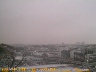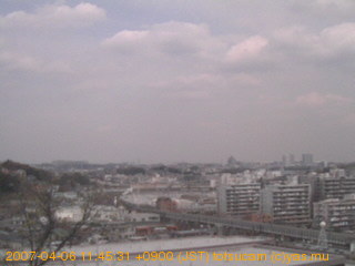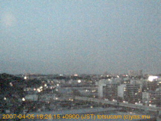 適度に曇った日の雲の動き (例: 2005-10-24) がとても楽しめます。 正面を横切っている高架は横須賀線下りです。 その下に横須賀線上り、東海道線、同貨物線が走っていますが、 高架に隠れていてよく見えません。 夜間は特に中央左寄りの車の動きがよく見えます。