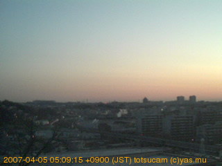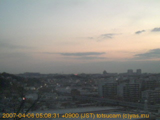 横浜市戸塚駅周辺から 東戸塚方面(北北東)を望む展望カメラの映像です。 左は現在の映像です。 下に並んでいるのは、 7日間に亘る日の出どき、昼間、夕暮れどきの写真(サムネイル)です。 それぞれ、日の出15分前、南中時、日没20分後の写真となっています。 各写真の下にはmpeg形式の動画へのリンクがあります。 それぞれ、日の出、南中、日没の前後1時間の画像です。 右欄にはその日24時間の動画へのリンクがあります。 この7日間以外は日付が一覧表示されています。 日付部分をクリックすると、 その日付から7日分が展開されて表示されます。