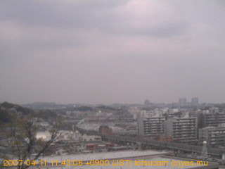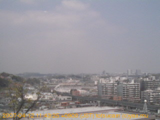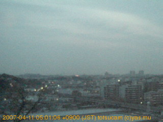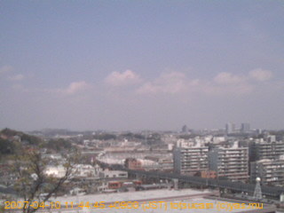適度に曇った日の雲の動き (例: 2005-10-24) がとても楽しめます。 正面を横切っている高架は横須賀線下りです。 その下に横須賀線上り、東海道線、同貨物線が走っていますが、 高架に隠れていてよく見えません。 夜間は特に中央左寄りの車の動きがよく見えます。
