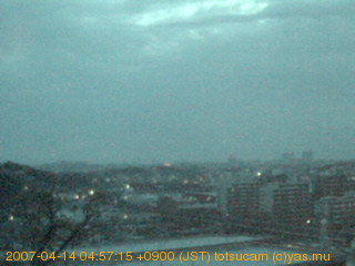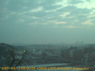 横浜市戸塚駅周辺から 東戸塚方面(北北東)を望む展望カメラの映像です。 左は現在の映像です。 下に並んでいるのは、 7日間に亘る日の出どき、昼間、夕暮れどきの写真(サムネイル)です。 それぞれ、日の出15分前、南中時、日没20分後の写真となっています。 各写真の下にはmpeg形式の動画へのリンクがあります。 それぞれ、日の出、南中、日没の前後1時間の画像です。 右欄にはその日24時間の動画へのリンクがあります。 この7日間以外は日付が一覧表示されています。 日付部分をクリックすると、 その日付から7日分が展開されて表示されます。