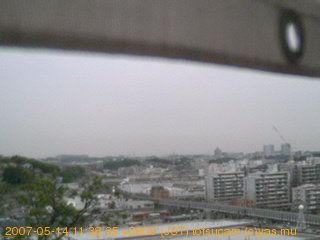 適度に曇った日の雲の動き (例: 2005-10-24) がとても楽しめます。 正面を横切っている高架は横須賀線下りです。 その下に横須賀線上り、東海道線、同貨物線が走っていますが、 高架に隠れていてよく見えません。 夜間は特に中央左寄りの車の動きがよく見えます。