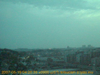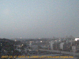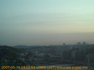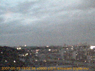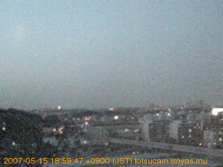 横浜市戸塚駅周辺から 東戸塚方面(北北東)を望む展望カメラの映像です。 左は現在の映像です。 下に並んでいるのは、 7日間に亘る日の出どき、昼間、夕暮れどきの写真(サムネイル)です。 それぞれ、日の出15分前、南中時、日没20分後の写真となっています。 各写真の下にはmpeg形式の動画へのリンクがあります。 それぞれ、日の出、南中、日没の前後1時間の画像です。 右欄にはその日24時間の動画へのリンクがあります。 この7日間以外は日付が一覧表示されています。 日付部分をクリックすると、 その日付から7日分が展開されて表示されます。