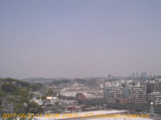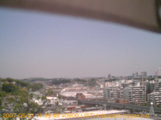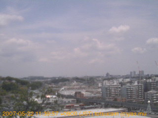 適度に曇った日の雲の動き (例: 2005-10-24) がとても楽しめます。 正面を横切っている高架は横須賀線下りです。 その下に横須賀線上り、東海道線、同貨物線が走っていますが、 高架に隠れていてよく見えません。 夜間は特に中央左寄りの車の動きがよく見えます。