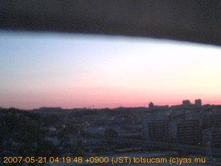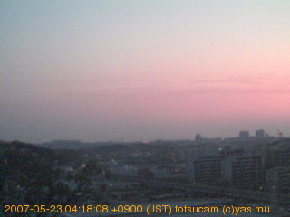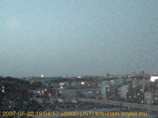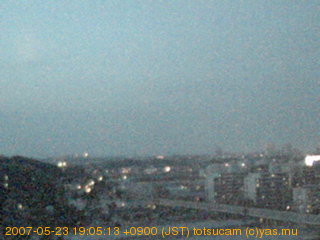 横浜市戸塚駅周辺から 東戸塚方面(北北東)を望む展望カメラの映像です。 左は現在の映像です。 下に並んでいるのは、 7日間に亘る日の出どき、昼間、夕暮れどきの写真(サムネイル)です。 それぞれ、日の出15分前、南中時、日没20分後の写真となっています。 各写真の下にはmpeg形式の動画へのリンクがあります。 それぞれ、日の出、南中、日没の前後1時間の画像です。 右欄にはその日24時間の動画へのリンクがあります。 この7日間以外は日付が一覧表示されています。 日付部分をクリックすると、 その日付から7日分が展開されて表示されます。