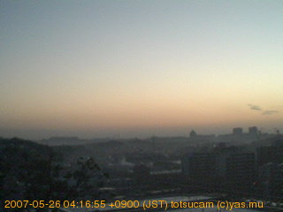 横浜市戸塚駅周辺から 東戸塚方面(北北東)を望む展望カメラの映像です。 左は現在の映像です。 下に並んでいるのは、 7日間に亘る日の出どき、昼間、夕暮れどきの写真(サムネイル)です。 それぞれ、日の出15分前、南中時、日没20分後の写真となっています。 各写真の下にはmpeg形式の動画へのリンクがあります。 それぞれ、日の出、南中、日没の前後1時間の画像です。 右欄にはその日24時間の動画へのリンクがあります。 この7日間以外は日付が一覧表示されています。 日付部分をクリックすると、 その日付から7日分が展開されて表示されます。