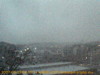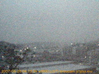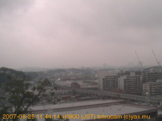 横浜市戸塚駅周辺から 東戸塚方面(北北東)を望む展望カメラの映像です。 左は現在の映像です。 下に並んでいるのは、 7日間に亘る日の出どき、昼間、夕暮れどきの写真(サムネイル)です。 それぞれ、日の出15分前、南中時、日没20分後の写真となっています。 各写真の下にはmpeg形式の動画へのリンクがあります。 それぞれ、日の出、南中、日没の前後1時間の画像です。 右欄にはその日24時間の動画へのリンクがあります。 この7日間以外は日付が一覧表示されています。 日付部分をクリックすると、 その日付から7日分が展開されて表示されます。