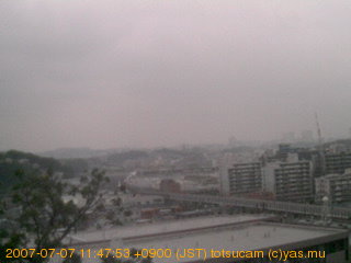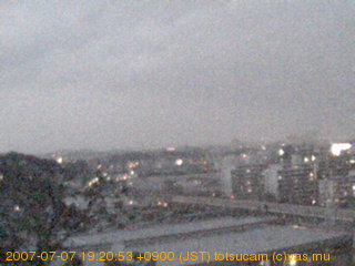 適度に曇った日の雲の動き (例: 2005-10-24) がとても楽しめます。 正面を横切っている高架は横須賀線下りです。 その下に横須賀線上り、東海道線、同貨物線が走っていますが、 高架に隠れていてよく見えません。 夜間は特に中央左寄りの車の動きがよく見えます。