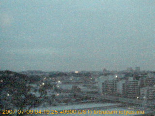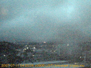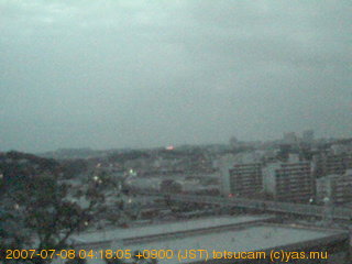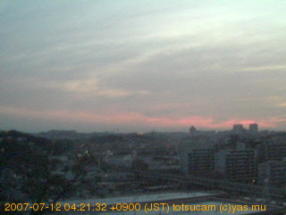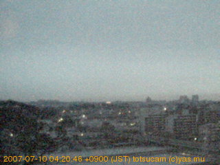 横浜市戸塚駅周辺から 東戸塚方面(北北東)を望む展望カメラの映像です。 左は現在の映像です。 下に並んでいるのは、 7日間に亘る日の出どき、昼間、夕暮れどきの写真(サムネイル)です。 それぞれ、日の出15分前、南中時、日没20分後の写真となっています。 各写真の下にはmpeg形式の動画へのリンクがあります。 それぞれ、日の出、南中、日没の前後1時間の画像です。 右欄にはその日24時間の動画へのリンクがあります。 この7日間以外は日付が一覧表示されています。 日付部分をクリックすると、 その日付から7日分が展開されて表示されます。