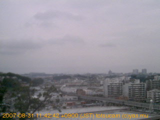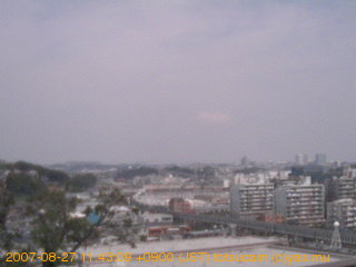 適度に曇った日の雲の動き (例: 2005-10-24) がとても楽しめます。 正面を横切っている高架は横須賀線下りです。 その下に横須賀線上り、東海道線、同貨物線が走っていますが、 高架に隠れていてよく見えません。 夜間は特に中央左寄りの車の動きがよく見えます。