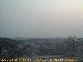 横浜市戸塚駅周辺から 東戸塚方面(北北東)を望む展望カメラの映像です。 左は現在の映像です。 下に並んでいるのは、 7日間に亘る日の出どき、昼間、夕暮れどきの写真(サムネイル)です。 それぞれ、日の出15分前、南中時、日没20分後の写真となっています。 各写真の下にはmpeg形式の動画へのリンクがあります。 それぞれ、日の出、南中、日没の前後1時間の画像です。 右欄にはその日24時間の動画へのリンクがあります。 この7日間以外は日付が一覧表示されています。 日付部分をクリックすると、 その日付から7日分が展開されて表示されます。
