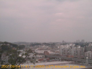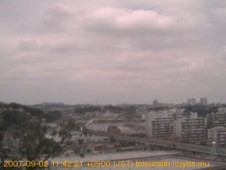 適度に曇った日の雲の動き (例: 2005-10-24) がとても楽しめます。 正面を横切っている高架は横須賀線下りです。 その下に横須賀線上り、東海道線、同貨物線が走っていますが、 高架に隠れていてよく見えません。 夜間は特に中央左寄りの車の動きがよく見えます。