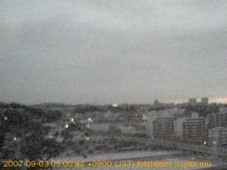 横浜市戸塚駅周辺から 東戸塚方面(北北東)を望む展望カメラの映像です。 左は現在の映像です。 下に並んでいるのは、 7日間に亘る日の出どき、昼間、夕暮れどきの写真(サムネイル)です。 それぞれ、日の出15分前、南中時、日没20分後の写真となっています。 各写真の下にはmpeg形式の動画へのリンクがあります。 それぞれ、日の出、南中、日没の前後1時間の画像です。 右欄にはその日24時間の動画へのリンクがあります。 この7日間以外は日付が一覧表示されています。 日付部分をクリックすると、 その日付から7日分が展開されて表示されます。