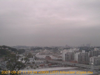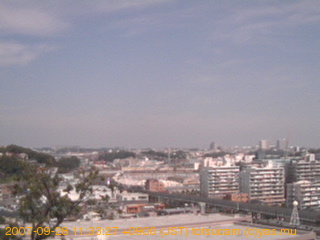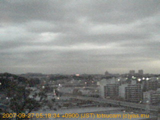 適度に曇った日の雲の動き (例: 2005-10-24) がとても楽しめます。 正面を横切っている高架は横須賀線下りです。 その下に横須賀線上り、東海道線、同貨物線が走っていますが、 高架に隠れていてよく見えません。 夜間は特に中央左寄りの車の動きがよく見えます。