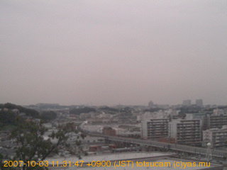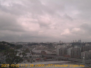 適度に曇った日の雲の動き (例: 2005-10-24) がとても楽しめます。 正面を横切っている高架は横須賀線下りです。 その下に横須賀線上り、東海道線、同貨物線が走っていますが、 高架に隠れていてよく見えません。 夜間は特に中央左寄りの車の動きがよく見えます。