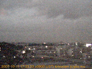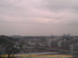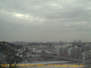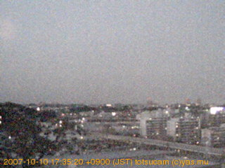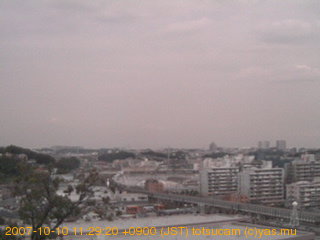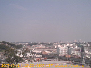 適度に曇った日の雲の動き (例: 2005-10-24) がとても楽しめます。 正面を横切っている高架は横須賀線下りです。 その下に横須賀線上り、東海道線、同貨物線が走っていますが、 高架に隠れていてよく見えません。 夜間は特に中央左寄りの車の動きがよく見えます。
