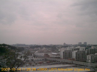 適度に曇った日の雲の動き (例: 2005-10-24) がとても楽しめます。 正面を横切っている高架は横須賀線下りです。 その下に横須賀線上り、東海道線、同貨物線が走っていますが、 高架に隠れていてよく見えません。 夜間は特に中央左寄りの車の動きがよく見えます。