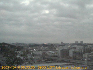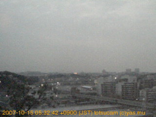 横浜市戸塚駅周辺から 東戸塚方面(北北東)を望む展望カメラの映像です。 左は現在の映像です。 下に並んでいるのは、 7日間に亘る日の出どき、昼間、夕暮れどきの写真(サムネイル)です。 それぞれ、日の出15分前、南中時、日没20分後の写真となっています。 各写真の下にはmpeg形式の動画へのリンクがあります。 それぞれ、日の出、南中、日没の前後1時間の画像です。 右欄にはその日24時間の動画へのリンクがあります。 この7日間以外は日付が一覧表示されています。 日付部分をクリックすると、 その日付から7日分が展開されて表示されます。
