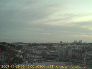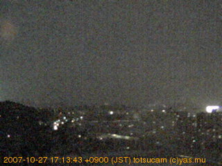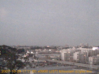 適度に曇った日の雲の動き (例: 2005-10-24) がとても楽しめます。 正面を横切っている高架は横須賀線下りです。 その下に横須賀線上り、東海道線、同貨物線が走っていますが、 高架に隠れていてよく見えません。 夜間は特に中央左寄りの車の動きがよく見えます。