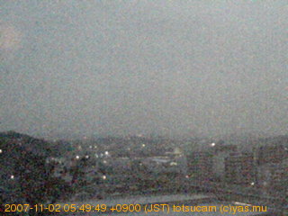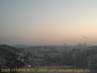 横浜市戸塚駅周辺から 東戸塚方面(北北東)を望む展望カメラの映像です。 左は現在の映像です。 下に並んでいるのは、 7日間に亘る日の出どき、昼間、夕暮れどきの写真(サムネイル)です。 それぞれ、日の出15分前、南中時、日没20分後の写真となっています。 各写真の下にはmpeg形式の動画へのリンクがあります。 それぞれ、日の出、南中、日没の前後1時間の画像です。 右欄にはその日24時間の動画へのリンクがあります。 この7日間以外は日付が一覧表示されています。 日付部分をクリックすると、 その日付から7日分が展開されて表示されます。