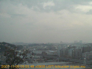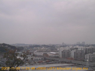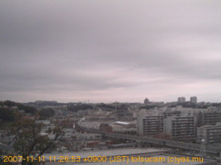 適度に曇った日の雲の動き (例: 2005-10-24) がとても楽しめます。 正面を横切っている高架は横須賀線下りです。 その下に横須賀線上り、東海道線、同貨物線が走っていますが、 高架に隠れていてよく見えません。 夜間は特に中央左寄りの車の動きがよく見えます。