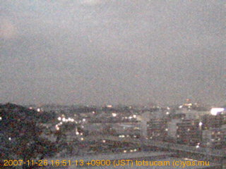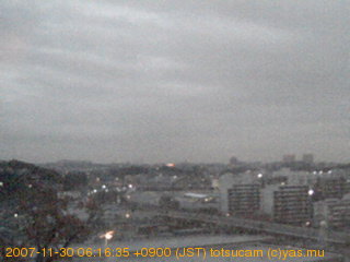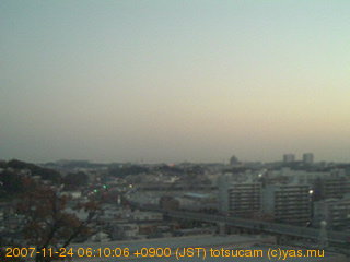 横浜市戸塚駅周辺から 東戸塚方面(北北東)を望む展望カメラの映像です。 左は現在の映像です。 下に並んでいるのは、 7日間に亘る日の出どき、昼間、夕暮れどきの写真(サムネイル)です。 それぞれ、日の出15分前、南中時、日没20分後の写真となっています。 各写真の下にはmpeg形式の動画へのリンクがあります。 それぞれ、日の出、南中、日没の前後1時間の画像です。 右欄にはその日24時間の動画へのリンクがあります。 この7日間以外は日付が一覧表示されています。 日付部分をクリックすると、 その日付から7日分が展開されて表示されます。