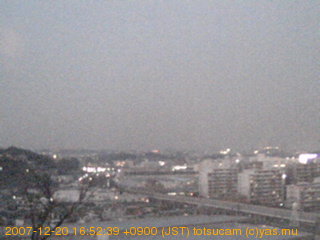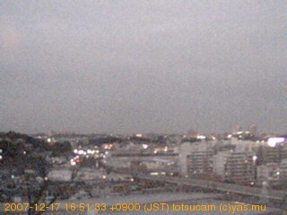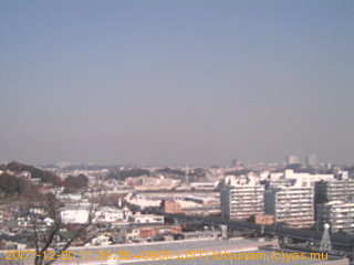 適度に曇った日の雲の動き (例: 2005-10-24) がとても楽しめます。 正面を横切っている高架は横須賀線下りです。 その下に横須賀線上り、東海道線、同貨物線が走っていますが、 高架に隠れていてよく見えません。 夜間は特に中央左寄りの車の動きがよく見えます。