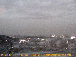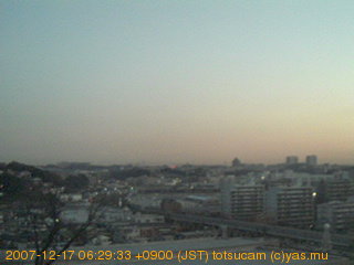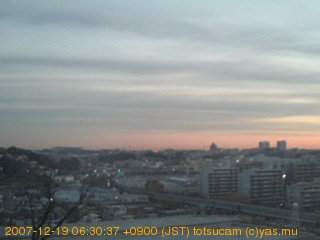 横浜市戸塚駅周辺から 東戸塚方面(北北東)を望む展望カメラの映像です。 左は現在の映像です。 下に並んでいるのは、 7日間に亘る日の出どき、昼間、夕暮れどきの写真(サムネイル)です。 それぞれ、日の出15分前、南中時、日没20分後の写真となっています。 各写真の下にはmpeg形式の動画へのリンクがあります。 それぞれ、日の出、南中、日没の前後1時間の画像です。 右欄にはその日24時間の動画へのリンクがあります。 この7日間以外は日付が一覧表示されています。 日付部分をクリックすると、 その日付から7日分が展開されて表示されます。