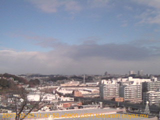 適度に曇った日の雲の動き (例: 2005-10-24) がとても楽しめます。 正面を横切っている高架は横須賀線下りです。 その下に横須賀線上り、東海道線、同貨物線が走っていますが、 高架に隠れていてよく見えません。 夜間は特に中央左寄りの車の動きがよく見えます。