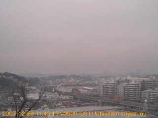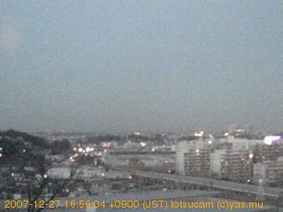 適度に曇った日の雲の動き (例: 2005-10-24) がとても楽しめます。 正面を横切っている高架は横須賀線下りです。 その下に横須賀線上り、東海道線、同貨物線が走っていますが、 高架に隠れていてよく見えません。 夜間は特に中央左寄りの車の動きがよく見えます。