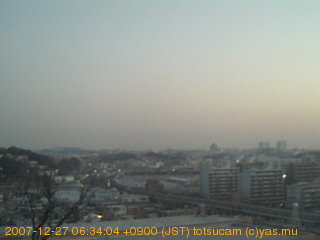 横浜市戸塚駅周辺から 東戸塚方面(北北東)を望む展望カメラの映像です。 左は現在の映像です。 下に並んでいるのは、 7日間に亘る日の出どき、昼間、夕暮れどきの写真(サムネイル)です。 それぞれ、日の出15分前、南中時、日没20分後の写真となっています。 各写真の下にはmpeg形式の動画へのリンクがあります。 それぞれ、日の出、南中、日没の前後1時間の画像です。 右欄にはその日24時間の動画へのリンクがあります。 この7日間以外は日付が一覧表示されています。 日付部分をクリックすると、 その日付から7日分が展開されて表示されます。