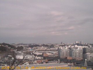 適度に曇った日の雲の動き (例: 2005-10-24) がとても楽しめます。 正面を横切っている高架は横須賀線下りです。 その下に横須賀線上り、東海道線、同貨物線が走っていますが、 高架に隠れていてよく見えません。 夜間は特に中央左寄りの車の動きがよく見えます。